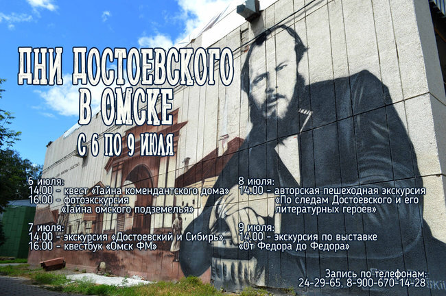 14.00 — экскурсия «Достоевский и Сибирь» (с посещением выставки «Казарма омского острога»). (200 руб./чел.)