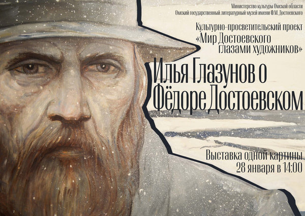 28 января в 14:00 музей представляет новый культурно-просветительский выставочный проект «Мир Достоевского глазами художников». Первое мероприятие проекта – «Илья Глазунов о Фёдоре Достоевском». Состоится выставка одной картины Ильи Глазунова «Ф.М. Достоевский». На открытии выставки гости музея узнают о жизни и творчестве художника, о том, почему его называют «Достоевским в живописи». Посетители познакомятся с картиной в интерактивном формате: «послушают» звуки картины, «погрузятся» в пространство полотна.