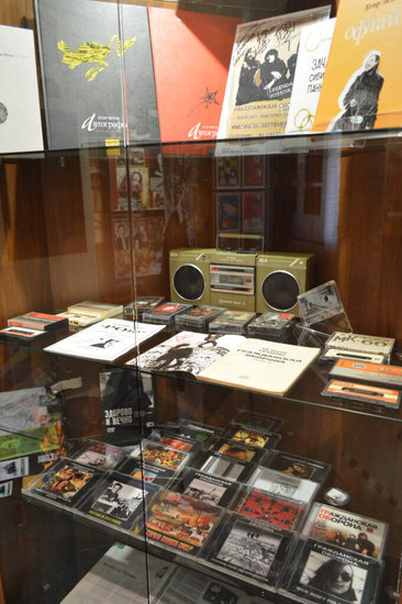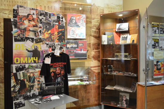 В ряду раритетных экспонатов выставки — самиздатовская брошюра под псевдонимом Егор Дохлый, выпущенная в 1986 году, и первый плакат группы «Гражданская оборона».