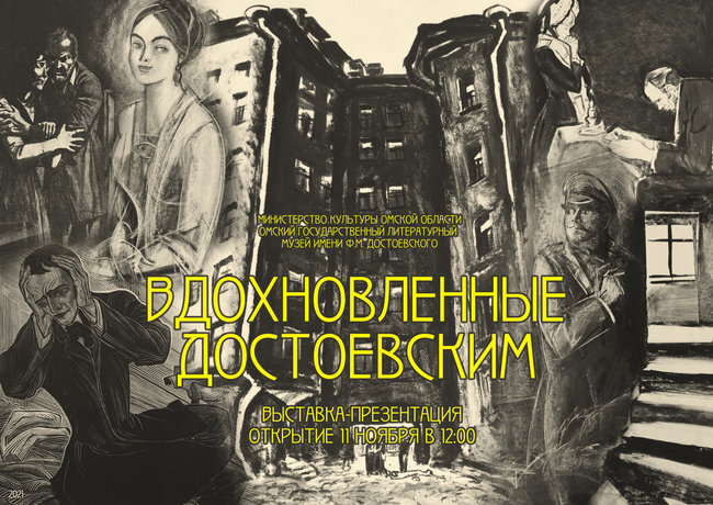 В 12.00 в лекционно-выставочном зале музея состоится выставка-презентация коллекции графики, переданной музею в 2019 году Министерством культуры РФ. Это иллюстрации к произведениям Достоевского, выполненные известными художниками. В их ряду: Бениамин Басов, Илья Богдеско, Виталий Горяев, Андрей Гончаров, Юрий Могилевский, Юрий Перевезенцев, Станислав Косенков, Владимир Минаев, Михаил Ройтер, Александр Смирнов, Мария Чуракова, Сергей Якутович. Выставка «Вдохновленные Достоевским» завершит одноименный проект, экспонирующий в течение года произведения изобразительного искусства, объединенные темой «Образы Достоевского и его героев». Все работы, представленные в этом проекте – из фондов литературного музея имени Ф.М.Достоевского.